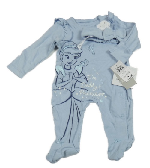 Nové - 2Set - Světlemodrý overal s Popelkou a volánky + čelenka s mašlí George