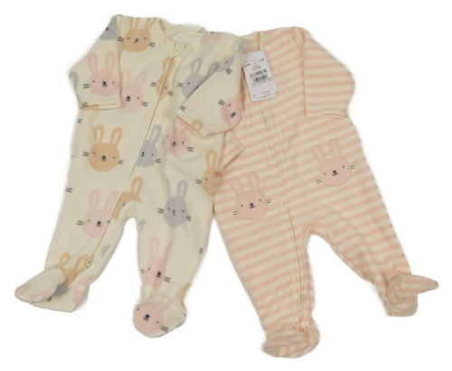 Nové - 2x - Smetanový + růžovo-smetanový pruhovaný fleecový overal se zajíčky Next