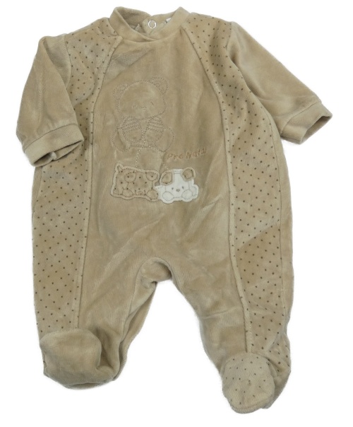 Světlehnědý sametový overal s medvídkem a štěňátky a puntíky Prénatal