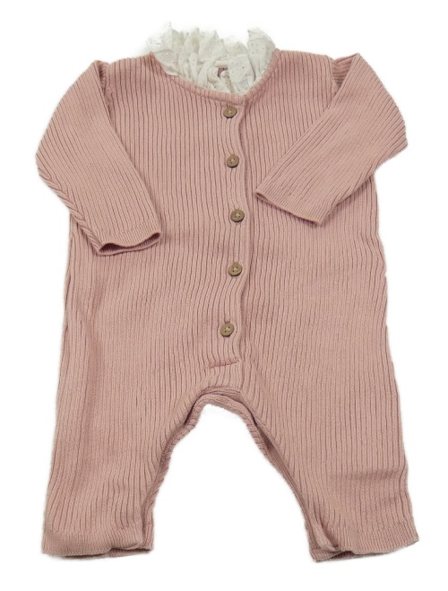 Růžový žebrovaný overal s krajkou George