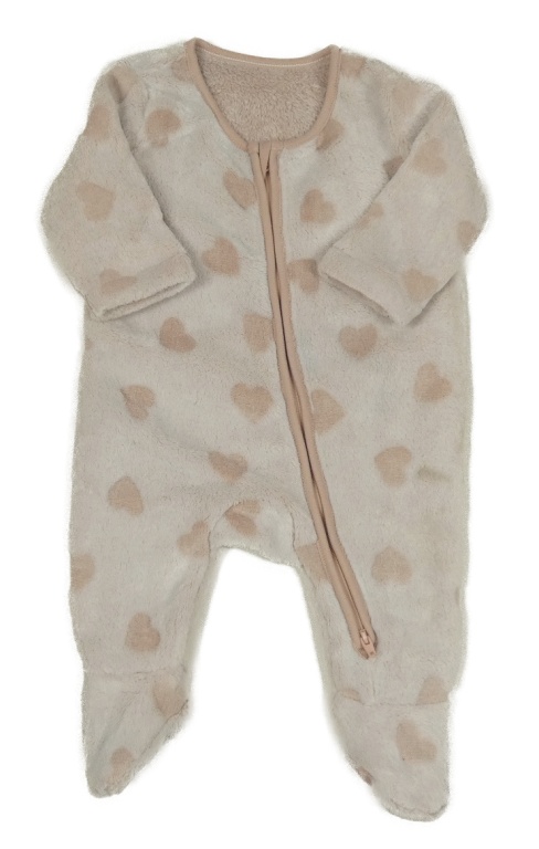 Bílo-růžový melírovaný chlupatý overal se srdíčky George
