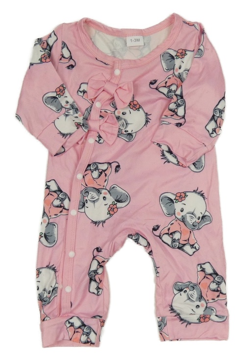 Růžový overal se slony a mašlemi