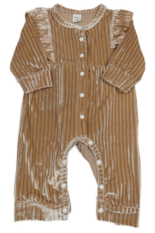 Hnědý žebrovaný sametový overal shein