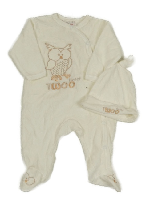 2set - Smetanový sametový overal se sovou + čepice Early Days