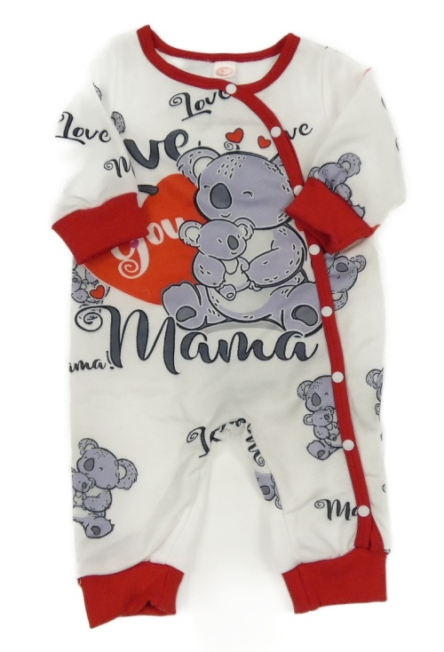 Bílý overal s koalami a červeným lemem