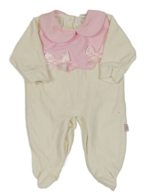 Bílý sametový overal s růžovým límečkem a mašličkami
