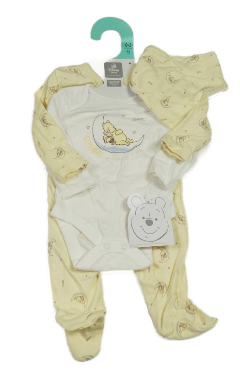 Nové - 3 set - bílé body s Púem + žlutý overal + slinták Disney