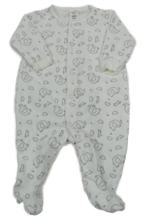 Bílý sametový overal se slony a mráčky baby club