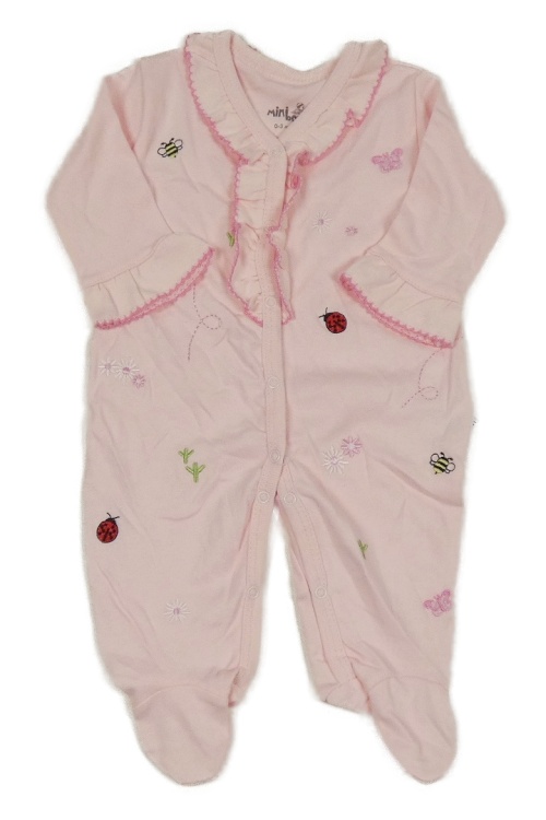 Růžový overal s výšivkami a volánky