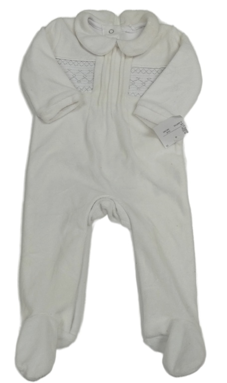 Nové - Bílý sametový overal s výšivkou a límečkem