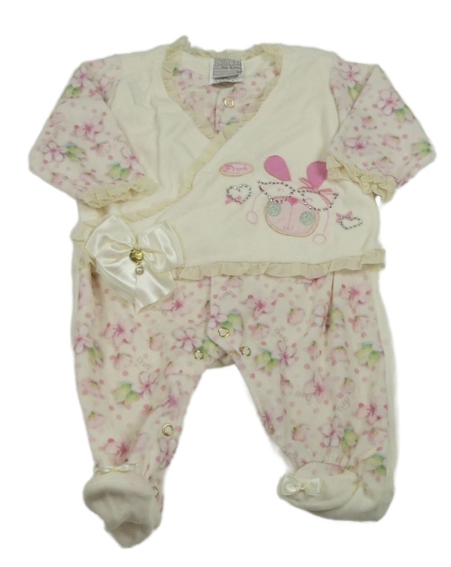 Bílý květovaný sametový overal s našitou vestou a králíčkem