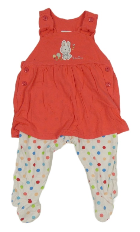 Jahodovo-bílé dupačky s tunikou s králíkem a puntíky Bornino