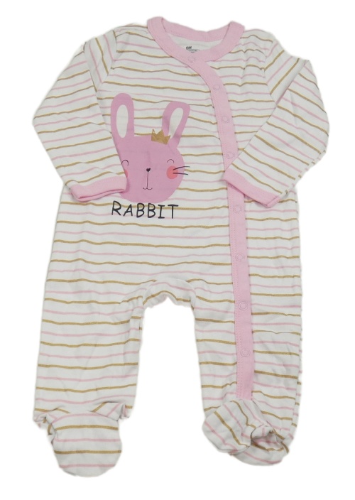 Bílo-zlato-růžový pruhovaný overal s králíčkem