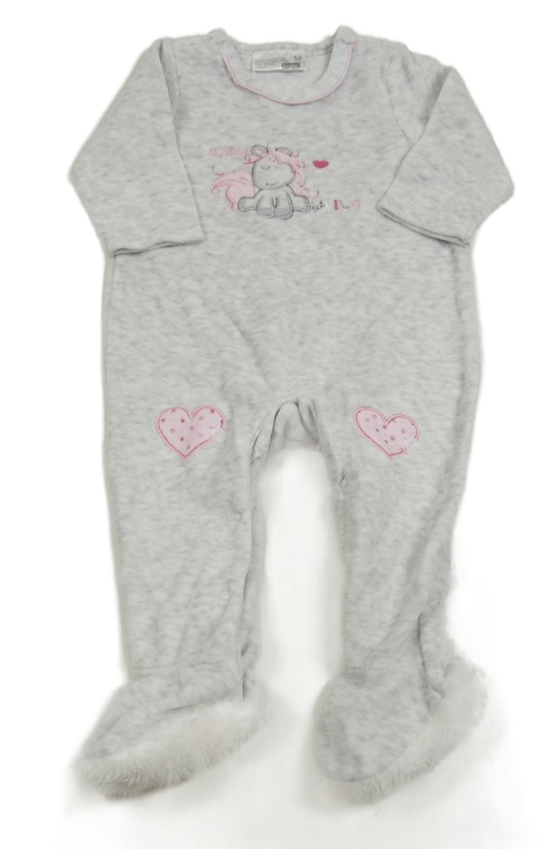 Světlešedý melírovaný sametový overal s jednorožcem a srdíčky Ergee