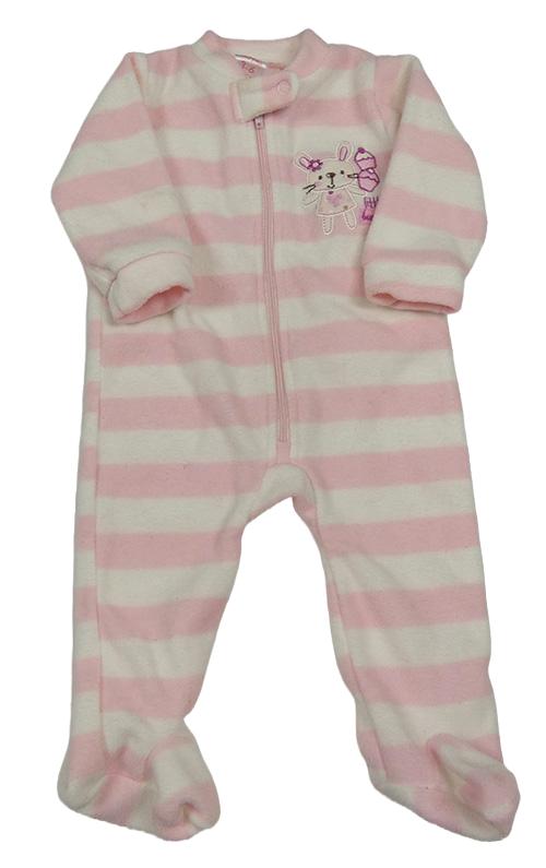 Růžovo-bílý pruhovaný fleecový overal s králíkem