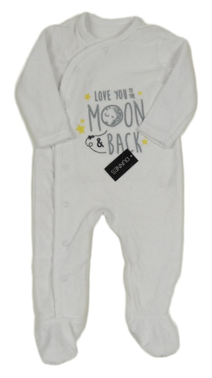Nové - bílý sametový overal s nápisy a měsícem a hvězdičkami St. Bernard