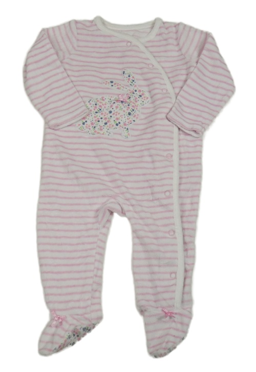 Bílo-růžový pruhovaný sametový overal s králíčkem St. Bernard