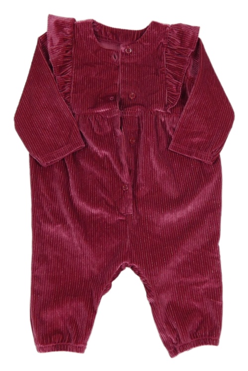 Vínovo-zlatý pruhovaný žebrovaný sametový overal s volánky George