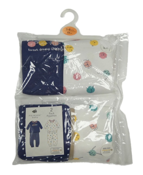 Nové - 2x pyžamo - bílé se zvířátky + tmavomodré puntíkaté Primark