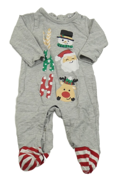 Šedý melírovaný vánoční overal se Santou a sobem a sněhuláčkem