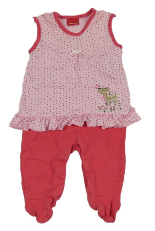 Jahodové dupačky s růžovou tunikou se srnkou a puntíky a volánkem SALT and PEPPER