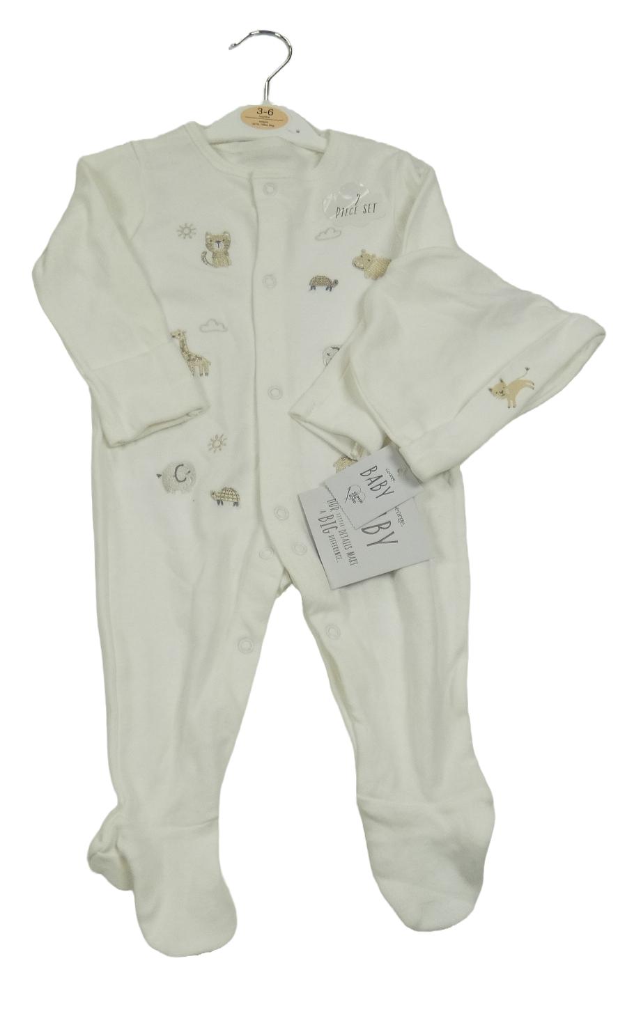 Nové - 2 set - smetanový overal se zvířátky + čepice George