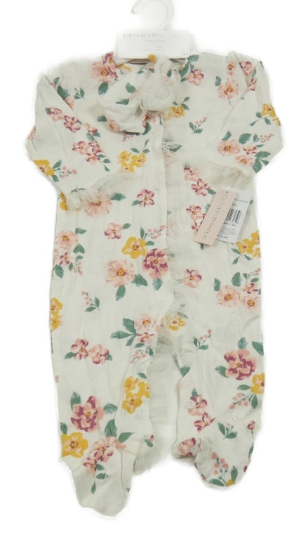 Nové - 2set - Smetanový květovaný overal + čelenka