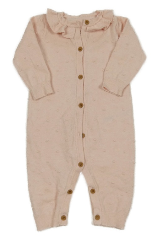 Světlerůžový pletený overal s 3D puntíky a volánkem Nutmeg
