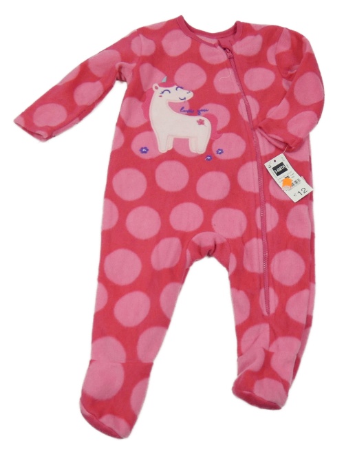 Nové - tmavorůžovo-růžový puntíkatý fleecový overal s jednorožcem St. Bernard