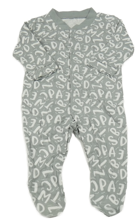 Šedý overal s bílými písmenky