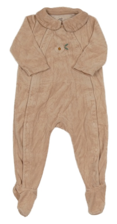 Světlerůžový žebrovaný sametový overal s kytičkou
