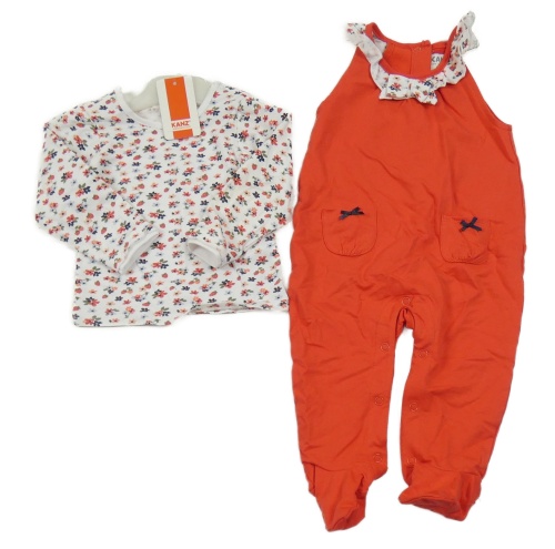 Nové - 2Set - Červené dupačky s mašličkami a volánkem + bílé triko s kytičkami a jahůdkami KANZ