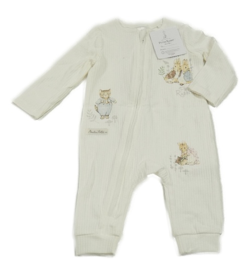 Nové - bílý žebrovaný overal s králíčky - Peter Rabbit