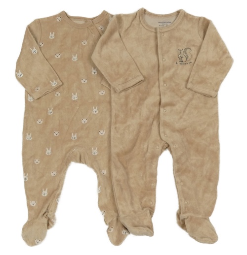 2x - Světlehnědý sametový overal se zvířátky KIABI
