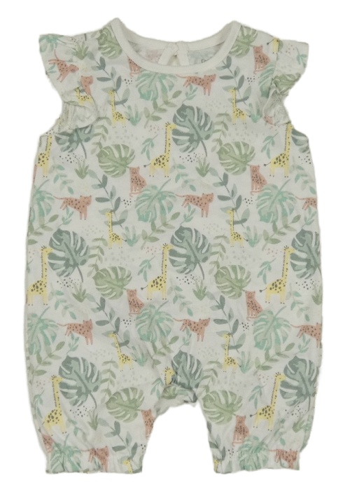 Bílý bavlněný kraťasový overal s květinami a zvířaty F&F