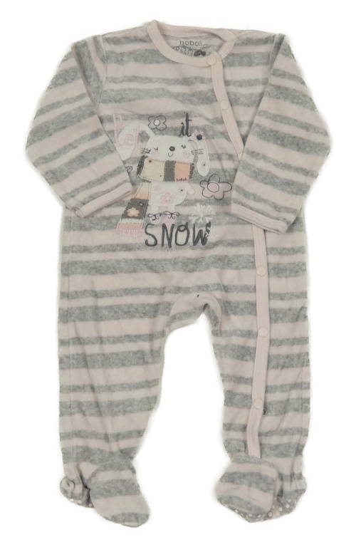 Šedo-růžový pruhovaný sametový overal s králíkem