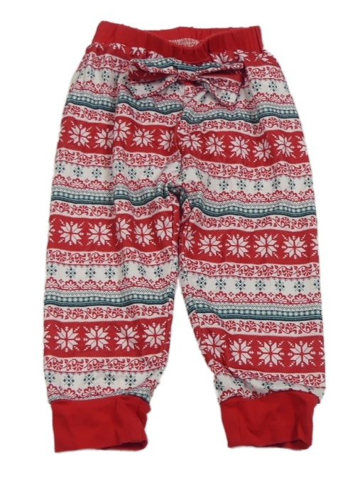 Červeno-bílo-zelené vzorované pyžamové kalhoty s mašlí