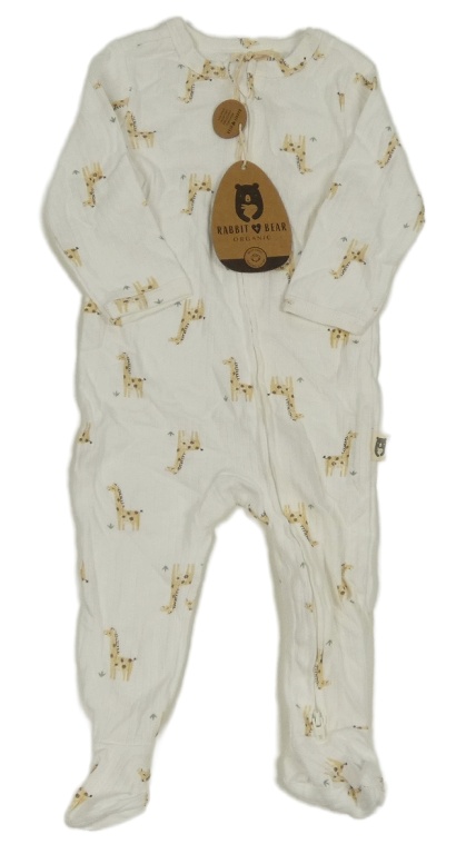 Nové - Bílý žebrovaný overal s žirafami Rabbit+Bear