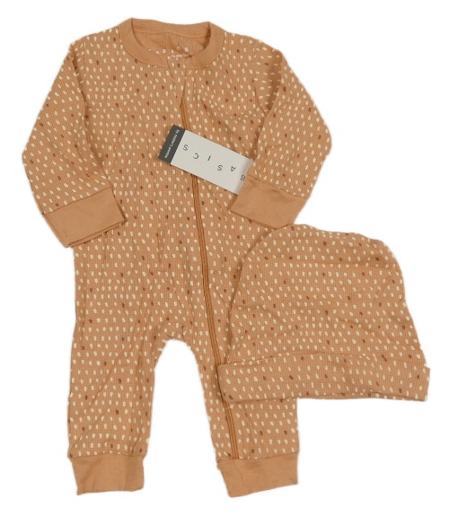 Nové - 2Set - Pudrový vzorovaný žebrovaný overal + čepice BASICS