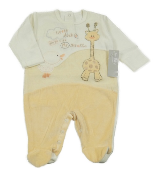 • Nové - bílo-světlebéžovo/oranžový sametový overal se žirafou a kachničkou St. Bernard