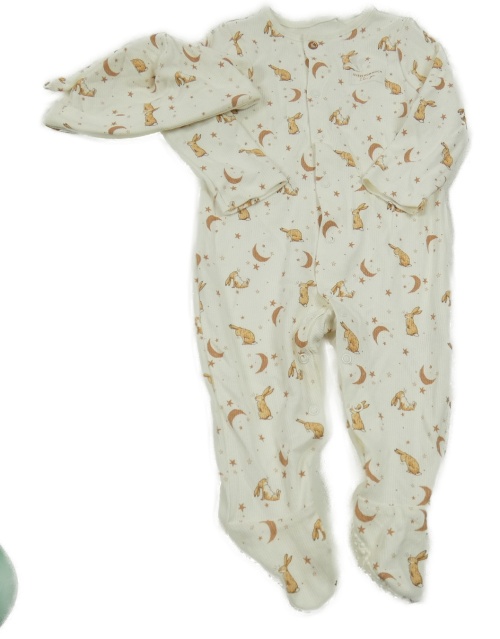 2set - Bílý žebrovaný overal se zajíčky + čepice