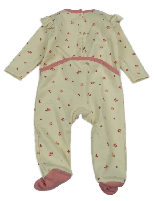 Vanilkový teplákový overal s kytičkami a růžovým lemem
