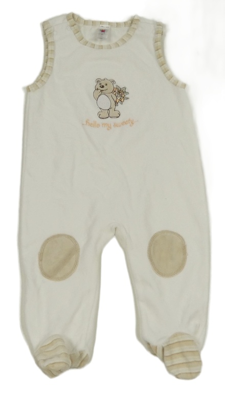 Bílo-béžové sametové dupačky s medvídkem C&A