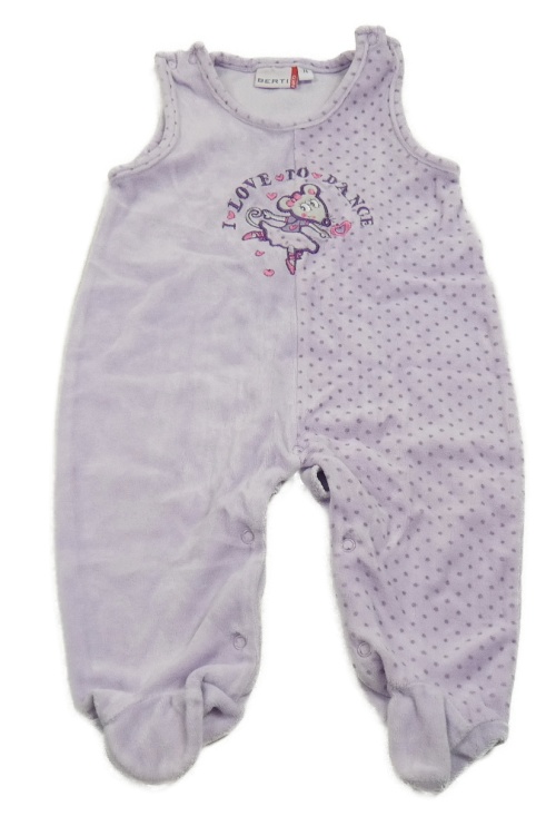 Lila sametové dupačky s myškou a puntíky