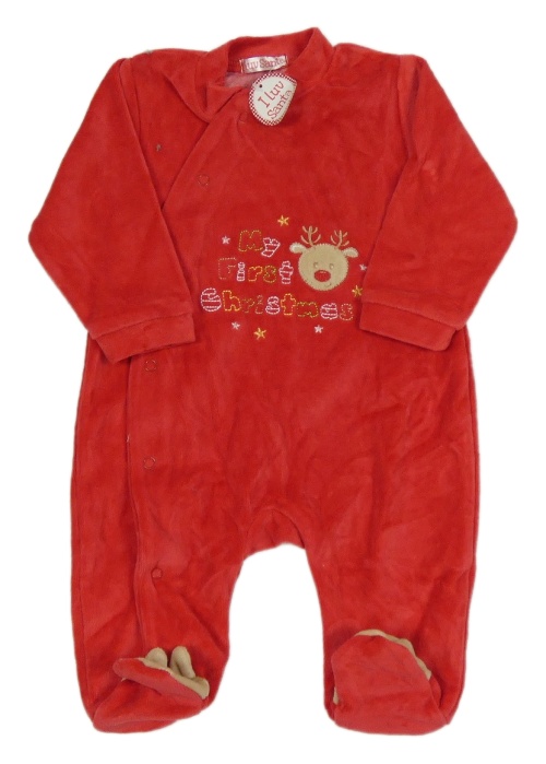 Nový - červený sametový vánoční overal se sobem a nápisy