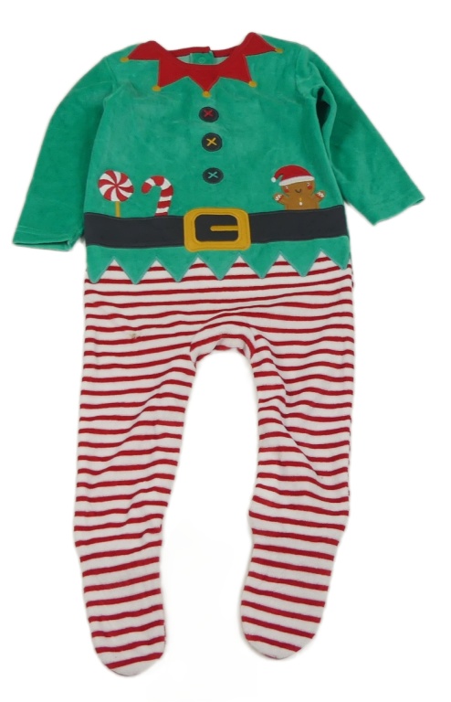 Zeleno-červeno-bílý sametový overal s perníčkem - elf Nutmeg