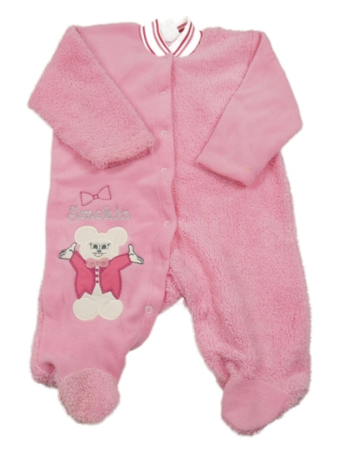 Růžový fleecovo/huňatý overal s myškou