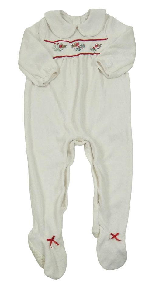 Bílý sametový overal s ptáčky a límečkem
