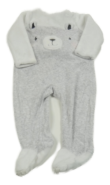 Světlešedo-bílý melírovaný sametovo/plyšový overal s medvídkem C&A