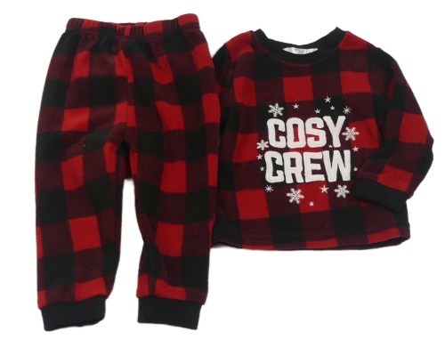Červeno-černé kostkované fleecové pyžamo s nápisy
